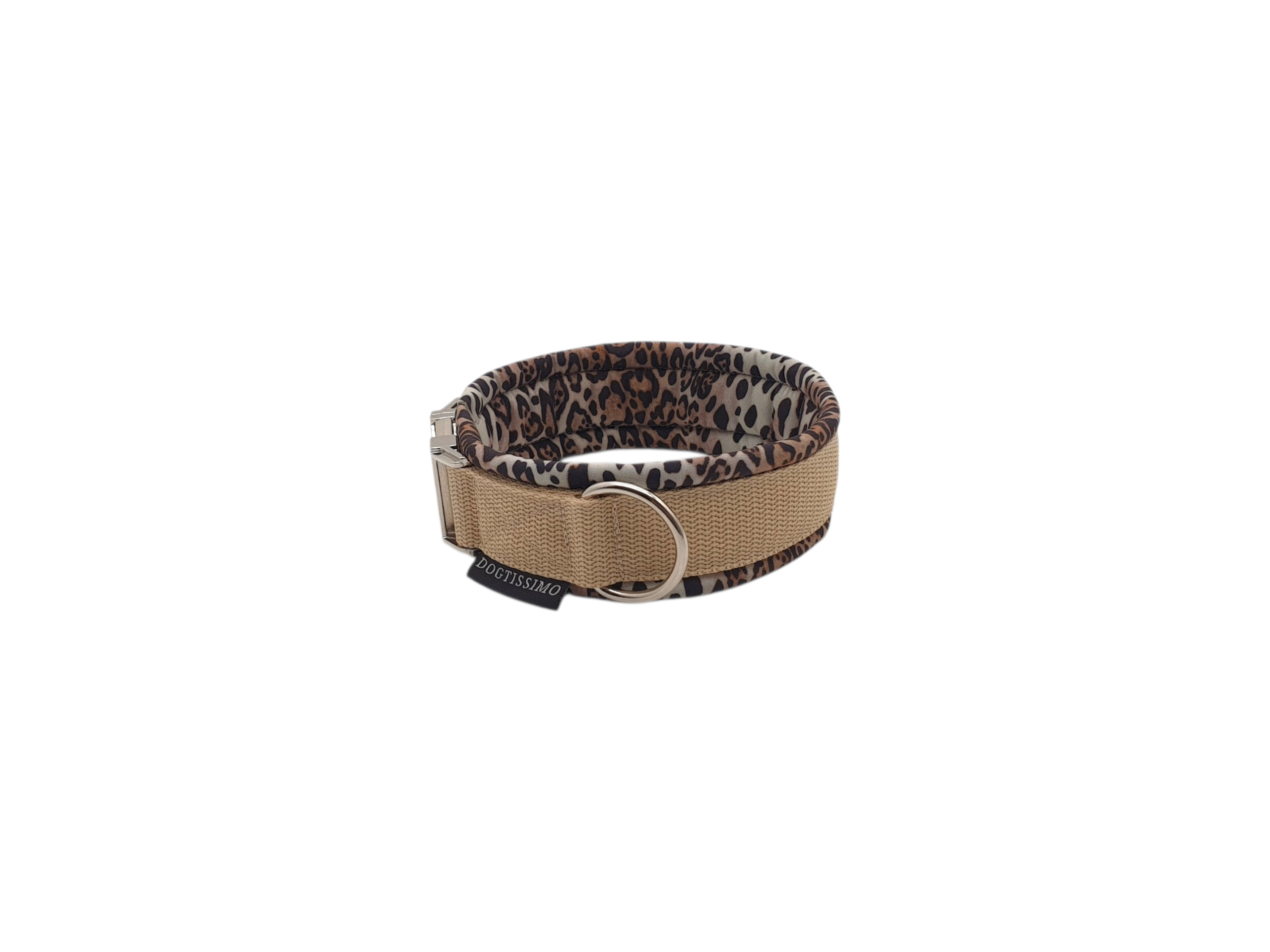 Halsband gepolstert personalisierbar Polsterung Softshell Leo zusätzliche innere Polsterlage UV-beständiges Gurtband in beige Klickverschluss aus Acetal, Metall oder von Alu-Max pflegeleicht: waschbar bei 30°C