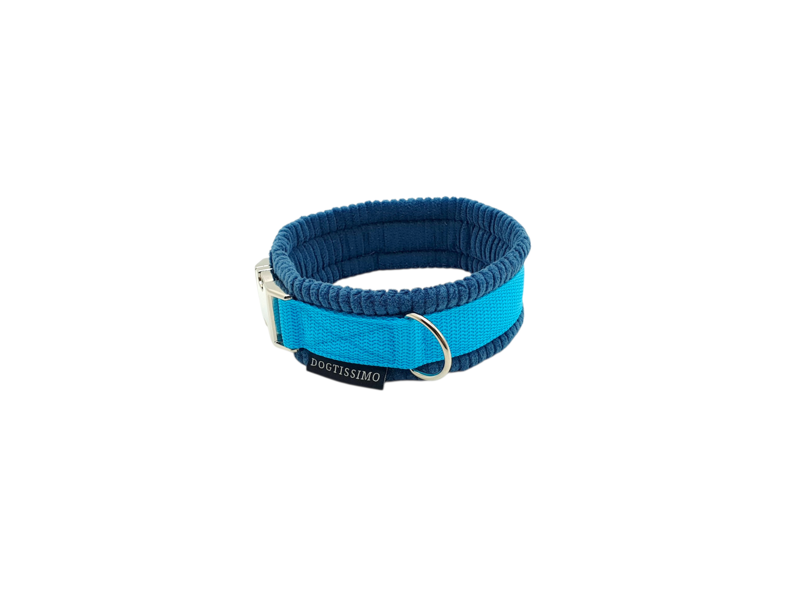 Hundehalsband Cord gepolstert, mit Namen – Petrol/hellblau